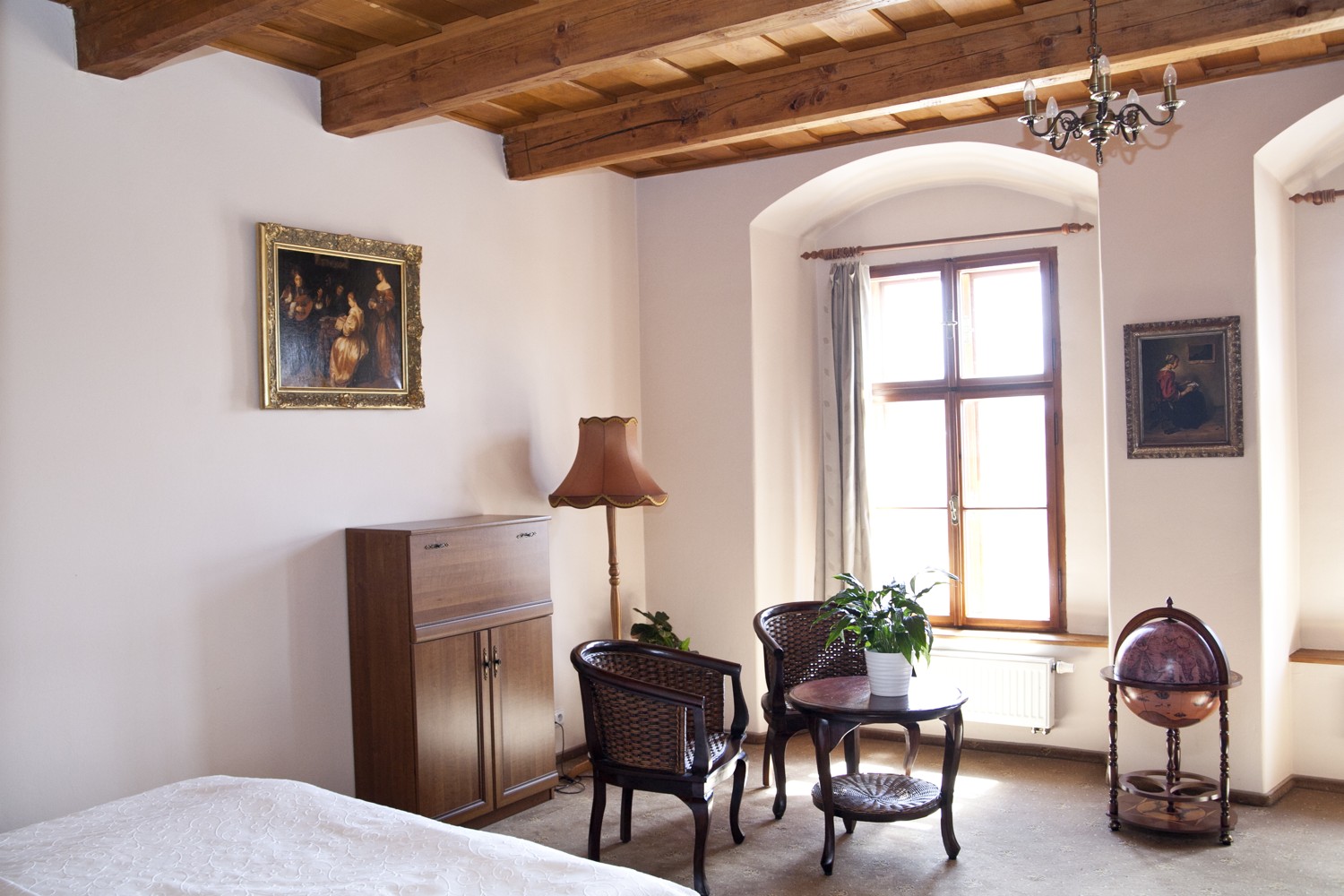 Zimmer mit Blick auf den charmanten Platz vom erhöhten Fenster aus.